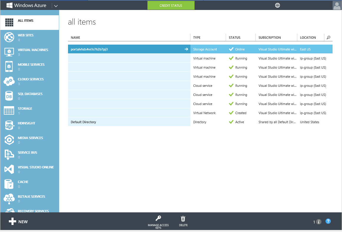 . 1 Una vez que sus beneficios están activos , tendrá que ir al portal de administración de Windows Azure – por razones obvias , he ofuscado mis nombres de servicios de máquinas virtuales y de nube.